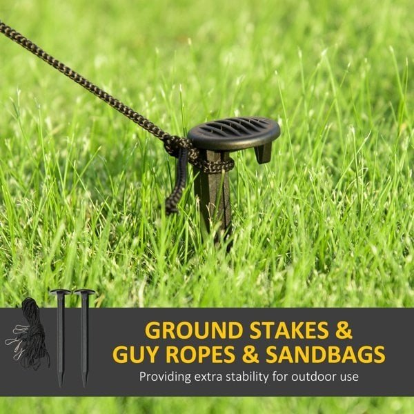 • – Includes two ground stakes and two drawstrings to help keep it anchored on windy nights