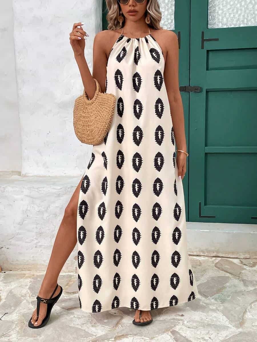 Women’s Halter Tassel Dress – Lace-up Backless Slit Holiday Outfit